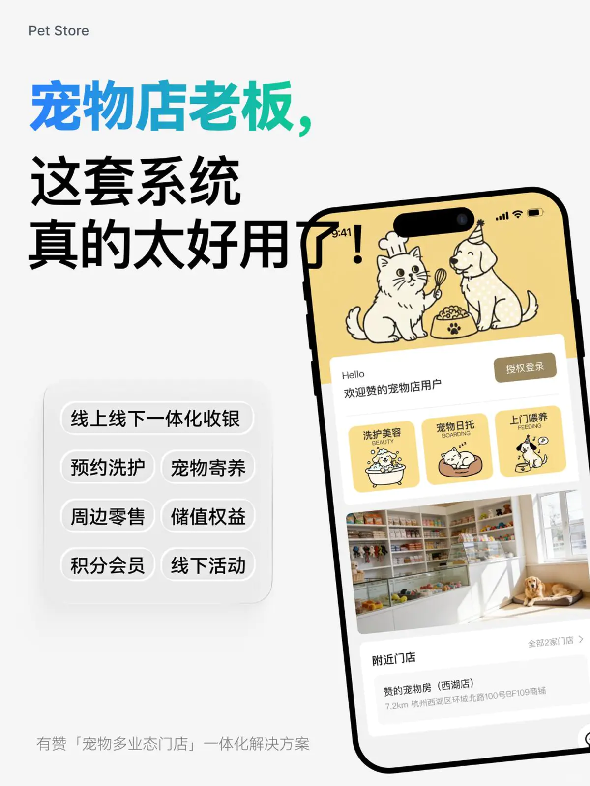 宠物门店专属数字化全链路经营管理解决方案。深耕宠物行业门店经营实操场景,贴合单店初创运营、连锁规模化扩张、品牌全域化布局全发展阶段,以数字化技术为核心支撑,打通门店服务、收银零售、线上商城、会员私域、数据管理全流程闭环,告别低效人工运营模式,助力每一家宠物门店实现