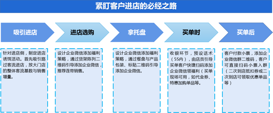 收银环节,5 秒内的预设话术,由店员引导买单客户快捷扫码添加企业微信领福利(买单现场可用,如代金券、特惠加购单品等等。