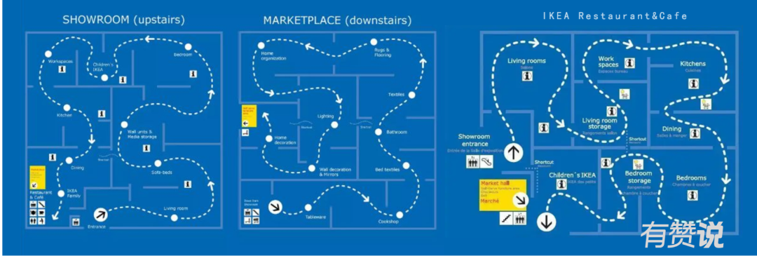关于宜家 「迷宫式」的商场布局,有商店设计专家称这是一种心理武器,指在尽可能长时间留住顾客的同时,从心理上迫使消费者进行冲动消费,购买更多的商品。
