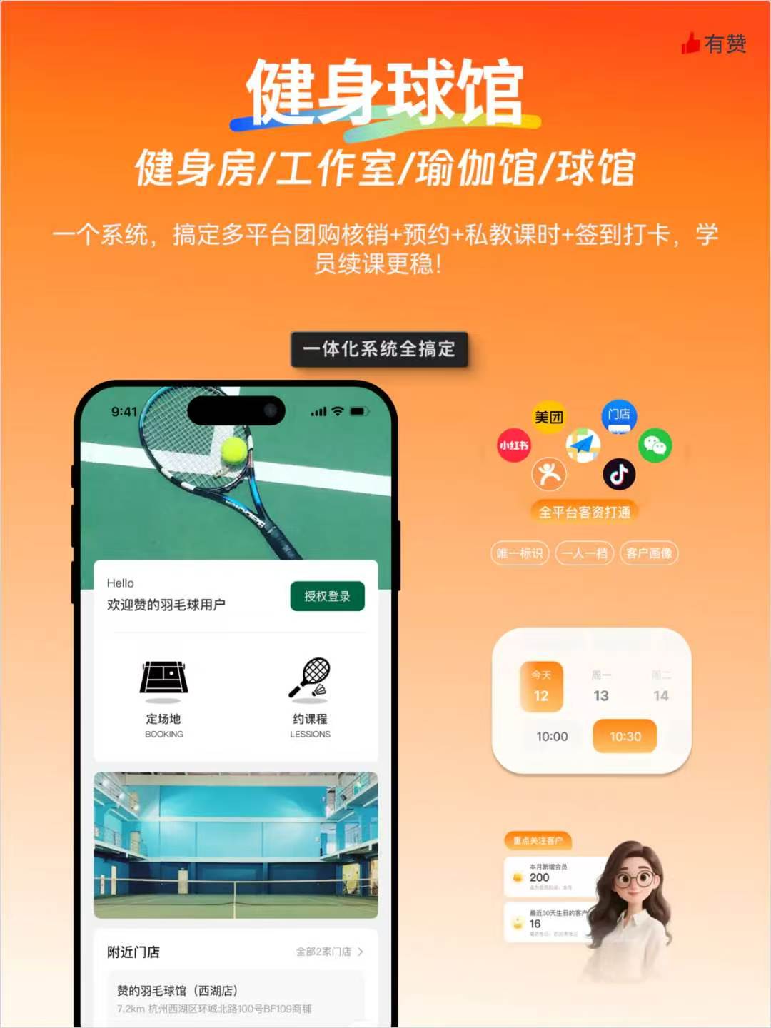 无论是小型私教工作室、单店瑜伽舞蹈馆,还是连锁综合健身场馆、球类运动空间,运动健身行业的竞争下半场,拼的不再是低价引流噱头,而是精细化数字化运营硬实力。告别多系统杂乱运维、告别人工低效管理、告别客源流失续费难,一套专属数字化经营解决方案,全链路打通获客引流、预约排班、核销管理、口碑裂变、会员续费核心环节,同步拉满门店运营效率与客户消费体验。 用数字化工具降本增效,用精细化运营锁客增收,让所有运动场馆主理人省心管理、轻松经营,专注做好课程服务本身,稳步实现客流增长、转化提升、续费暴涨、长效盈利。